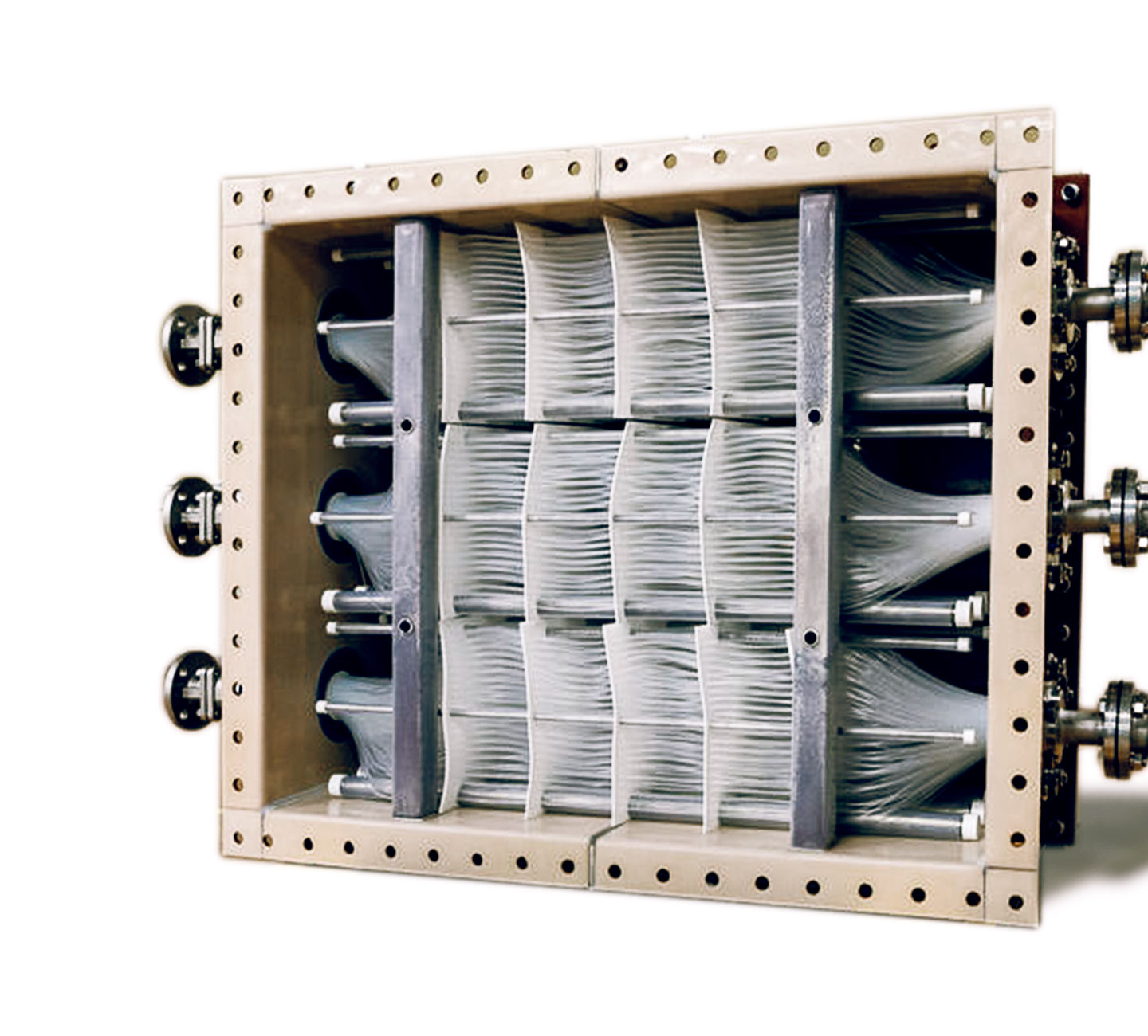 ●软管束端部通过加热熔接方式进行了蜂巢成型,两端的密封处为2 处× 模块数,通常最少为6 ~ 28处 。密封材料使用了氟橡胶垫圈,具有出色的可靠性。